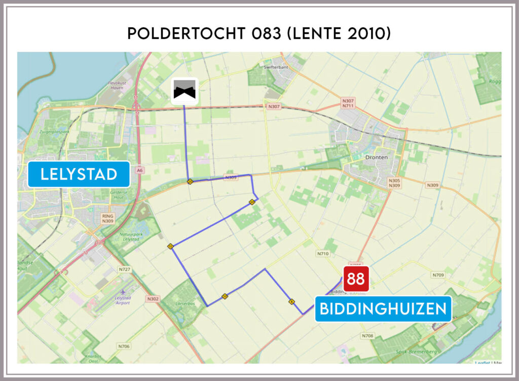 - Route: Biddinghuizen (30 km) Jade City, Baan, Biddingringweg, Kubbeweg, Rietweg, Larserringweg, Lisdoddeweg, Lisdoddepad, Dronterweg, Swifterringweg